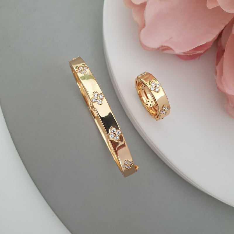An elegant 2-piece floral bangle and ring set with AAA cubic zirconia, designed for premium-looking occasional wear.
