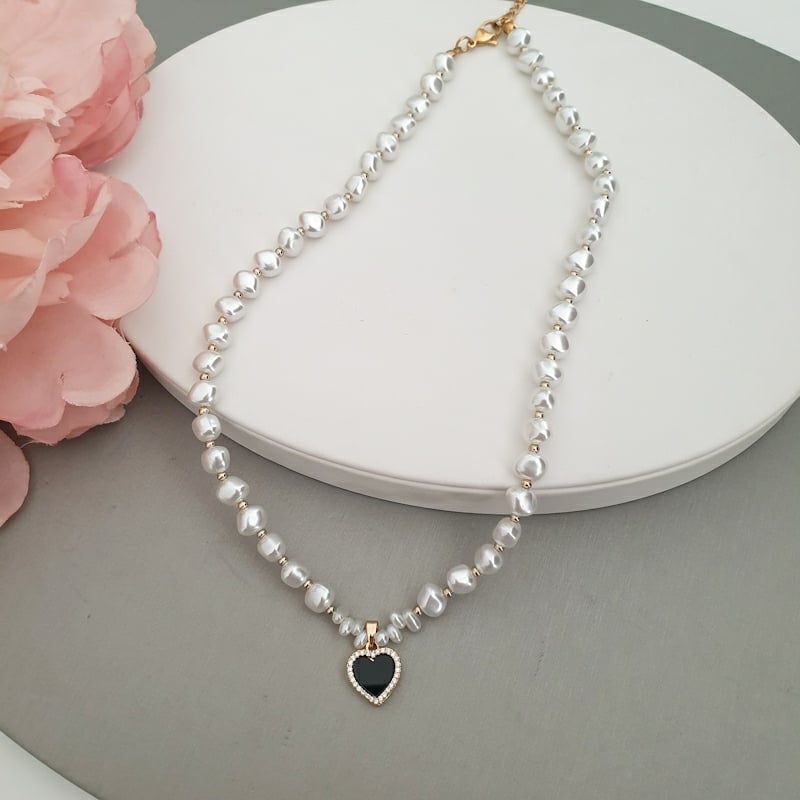 Designed with lustrous pearls and finished with a petite heart-shaped pendant,
