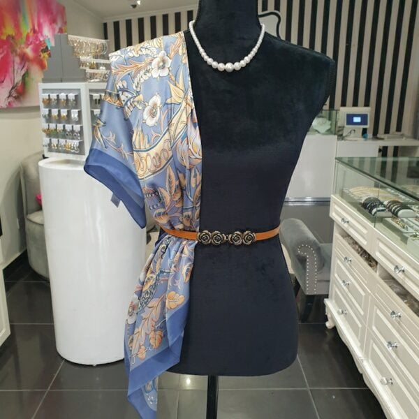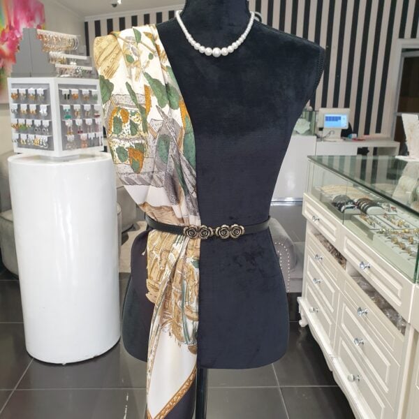 Its versatile design makes it easy to style around the neck, shoulders, hair, or handbag, offering a polished finish suitable for both casual looks and special outings.