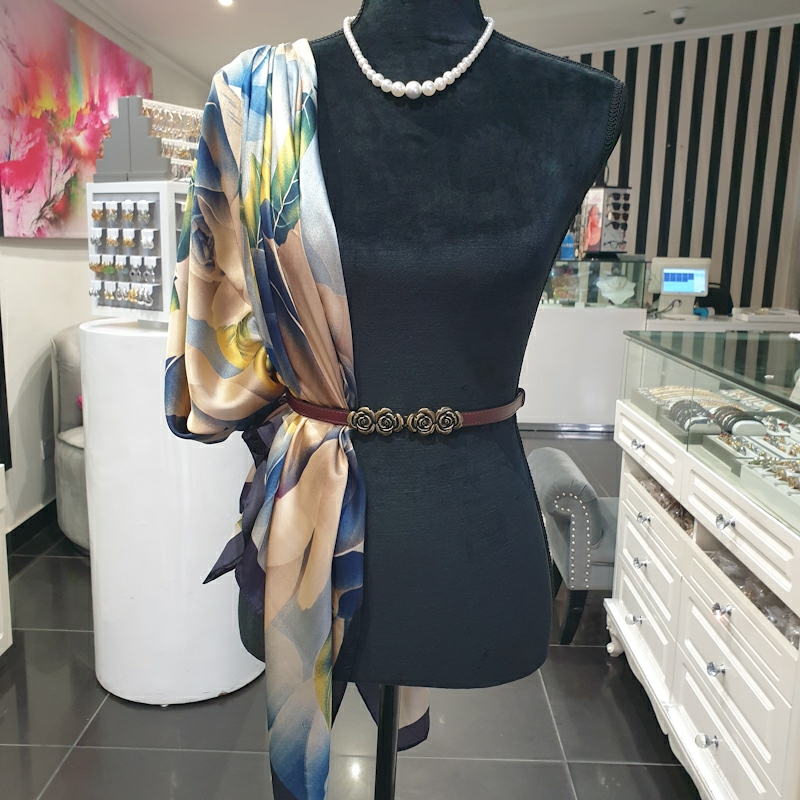 Its floral-inspired design brings a fresh, feminine touch, making it easy to style around the neck, shoulders, hair, or handbag.