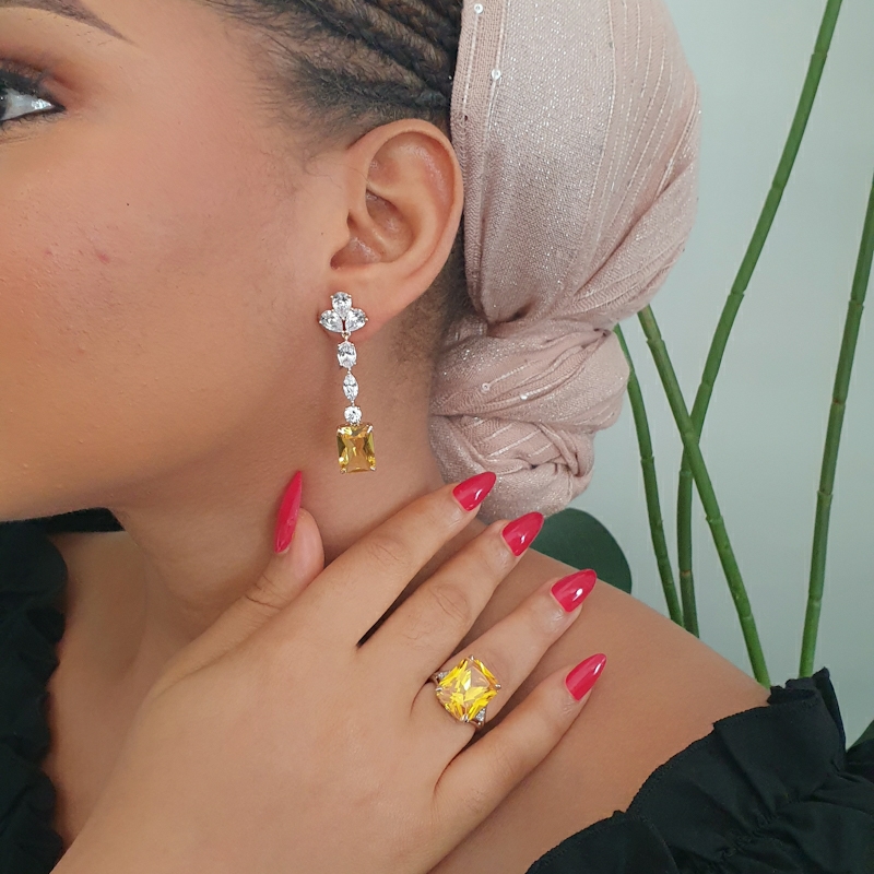 Cube Drop Flora Earrings - Sterlin Glams - Jewelries & Accessories Store