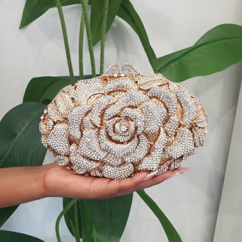 Gold Crystal Rose Clutch - Sterlin Glams - Jewelries & Accessories Store