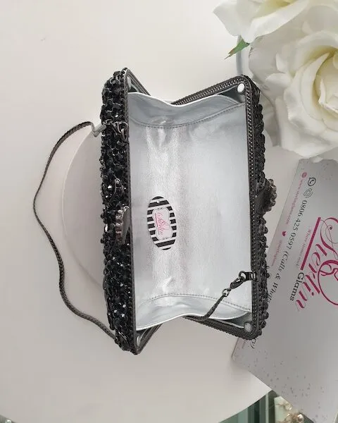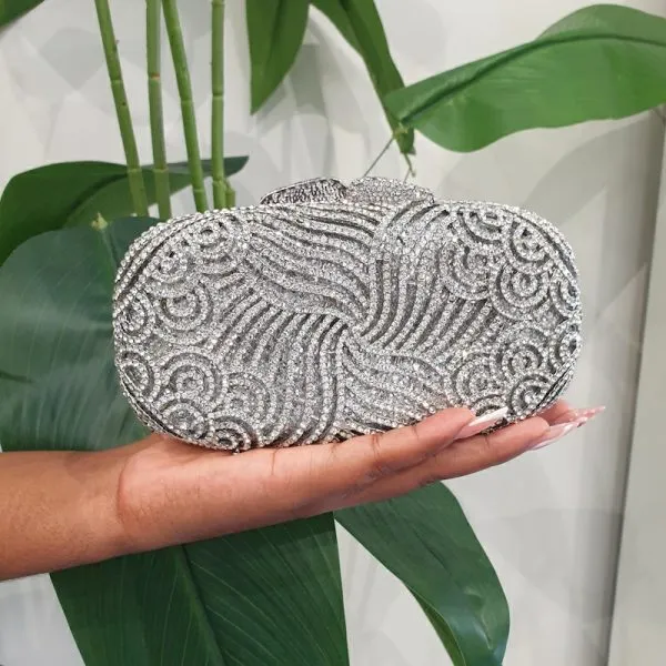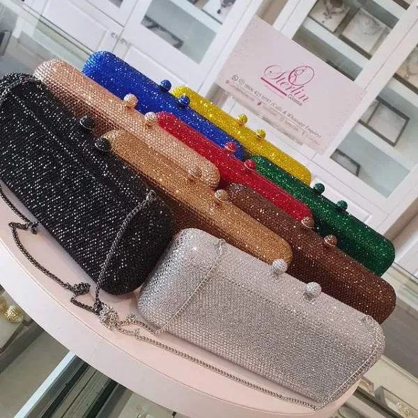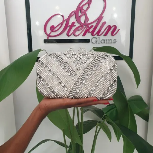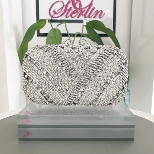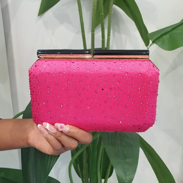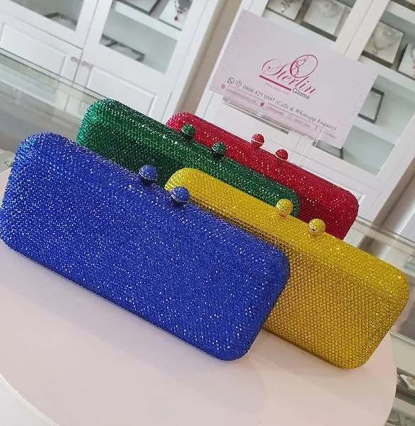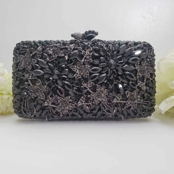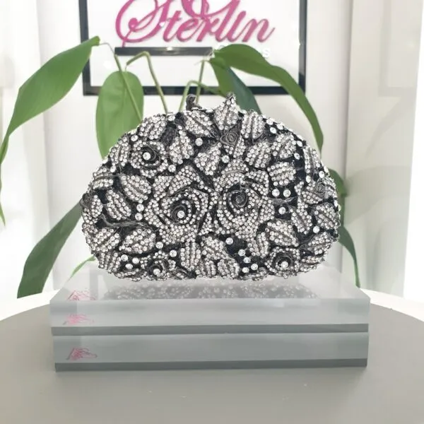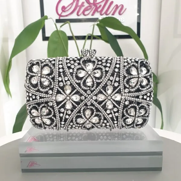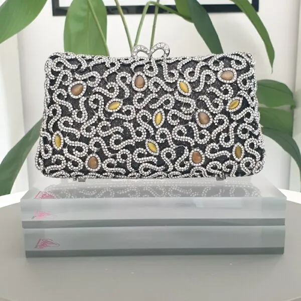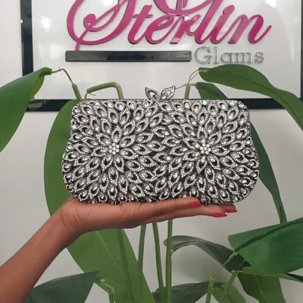 this exquisite clutch is beautifully adorned with shimmering crystals