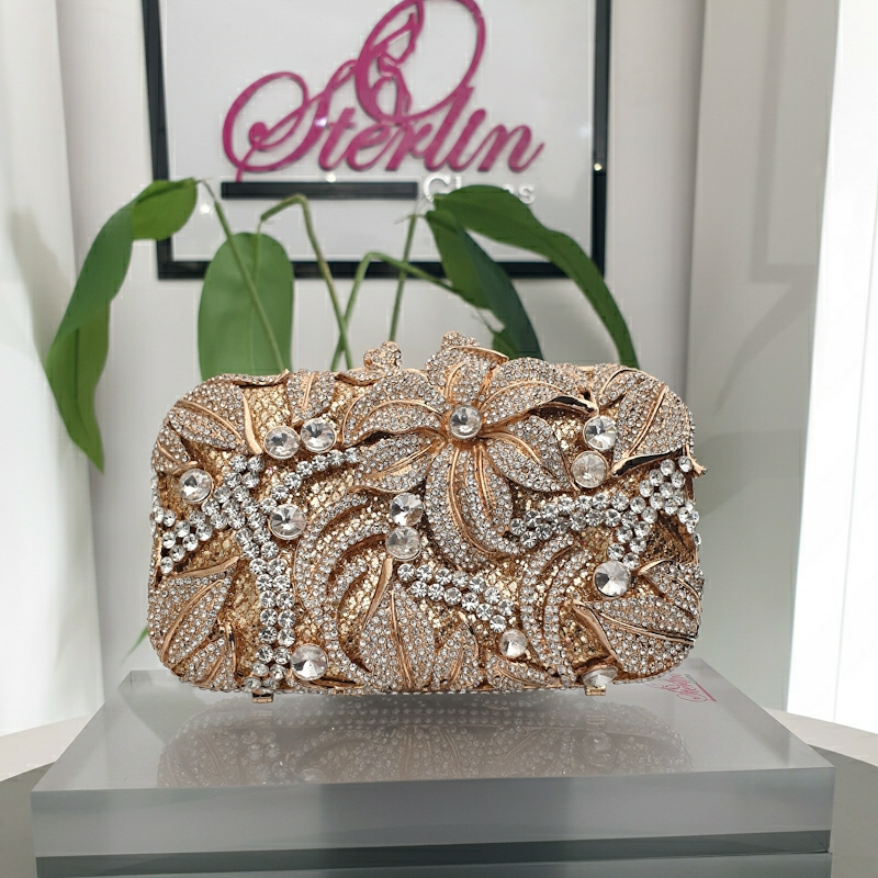 the Gold Petal Crystal Clutch delivers show-stopping style with a premium feel.