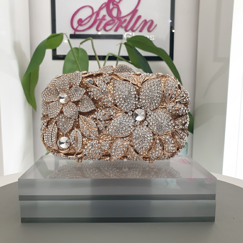 this clutch is beautifully adorned with shimmering stone embellishments that