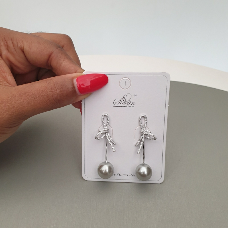 Grey Pearl Silver Earring - Sterlin Glams - Jewelries & Accessories Store
