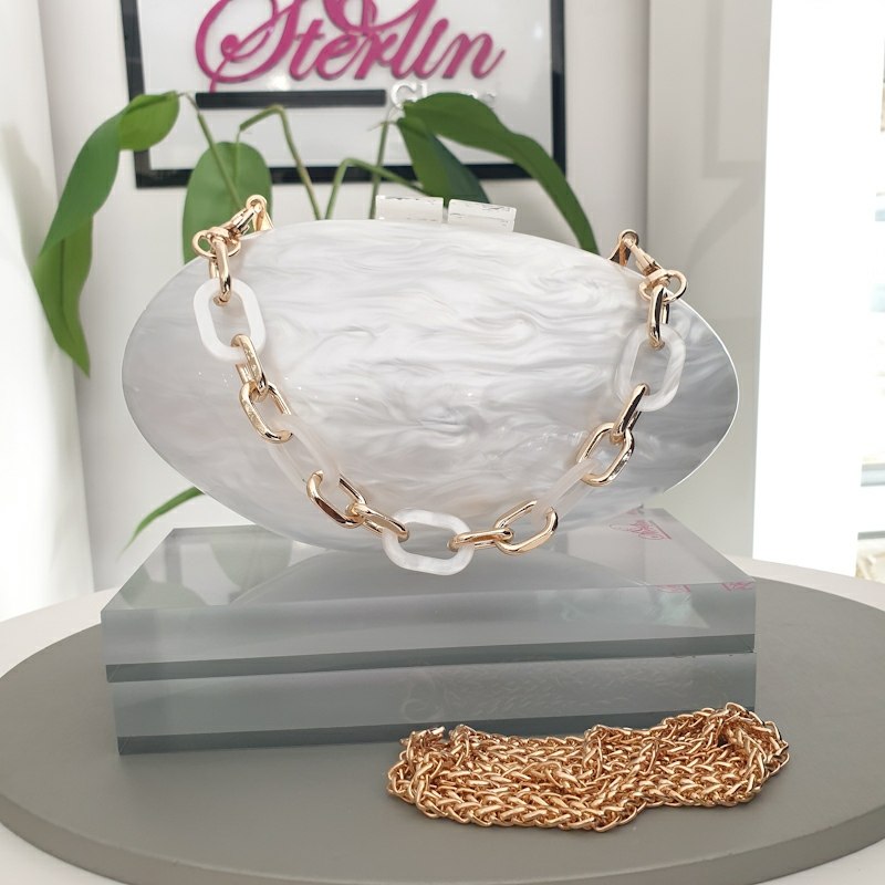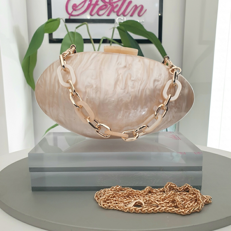 This exquisite hand crafted acrylic clutch has been adorned in a