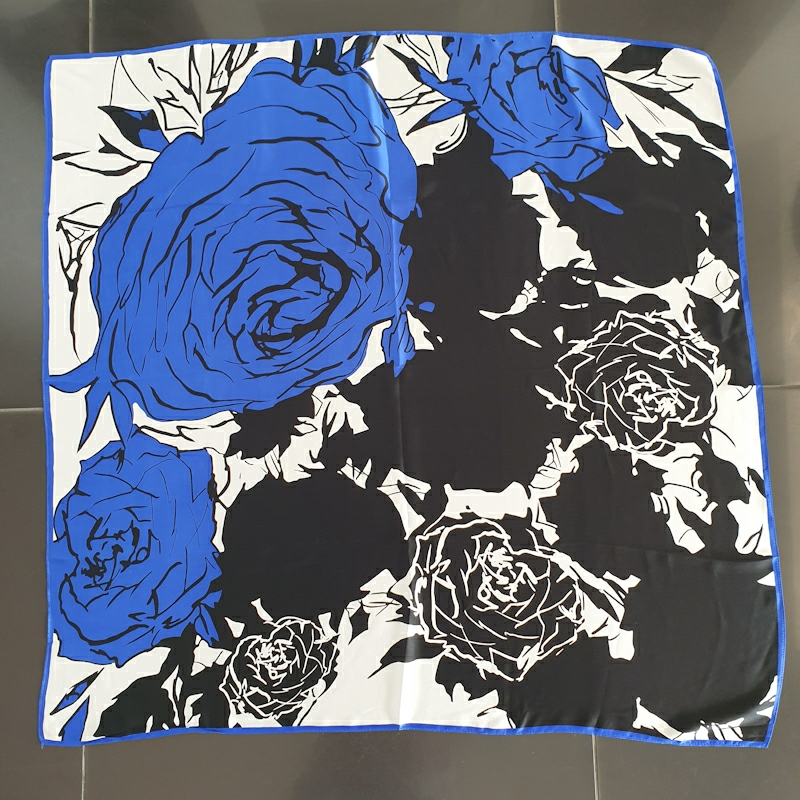 Petal Blue/Black 100% Silk Scarf - Sterlin Glams - Jewelries & Accessories Store