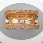Rose Crystal Clutch delivers graceful impact through radiant texture,