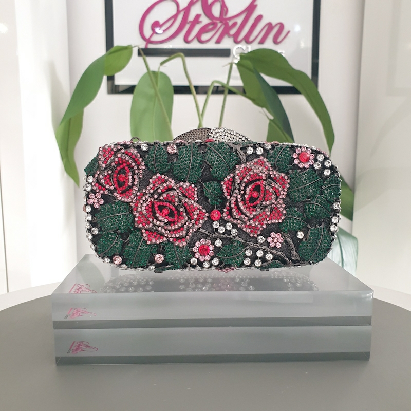 Rose Crystal Clutch is an elegant statement accessory designed to elevate refined