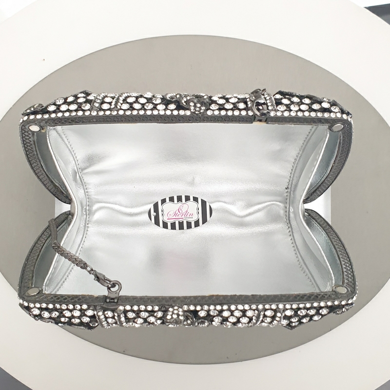 Stone Elements Rhinestone Crystal Metal case box clutch.